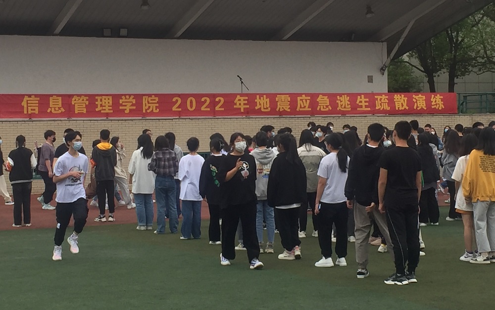 安全保卫处利用校园宣传阵地普及防灾减灾知识,开展灾害隐患排查治理工作,组织信息管理学院开展防震实操演练,提高广大师生的防灾减灾意识和应对突发事件的自救避险能力。