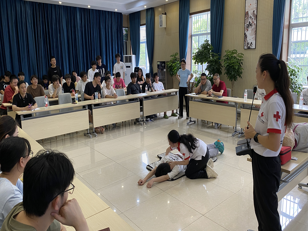 根据“安全生产月”活动部署要求切实提高师安全意识和应急处置能力6月19日,安全保卫处请了无锡市红十字会来校开展应急救护专题培训。次培训由安全保卫处处长杨俊主持各学院安全负责人、安全员、学生代表、服务外包工作人员70人次加了现场培训