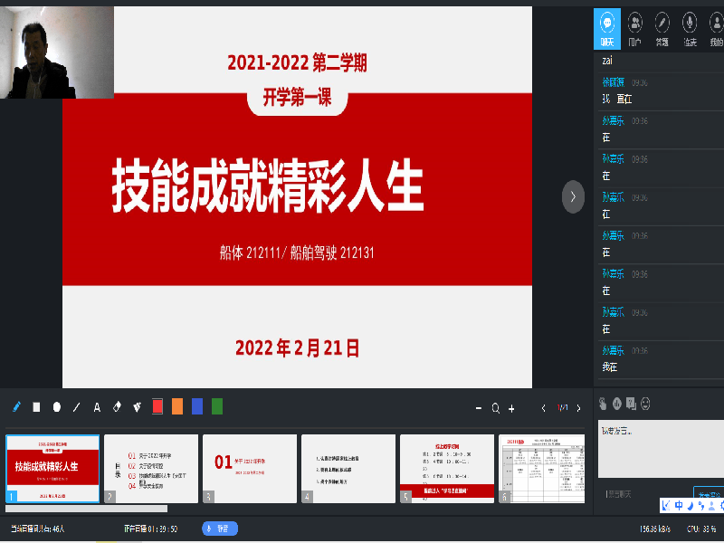为深入贯彻落实习近平总书记关于技能人才的重要指示精神,引导学生做好开学准备、疫情防控等相关工作,2月21日上午,船舶工程学院组织各班级开展线上“开学第一课”学习活动。