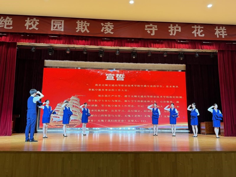 接下来空乘学子们现场表演了精彩节目,充分展现了空乘学子们朝气蓬勃的精神风貌。