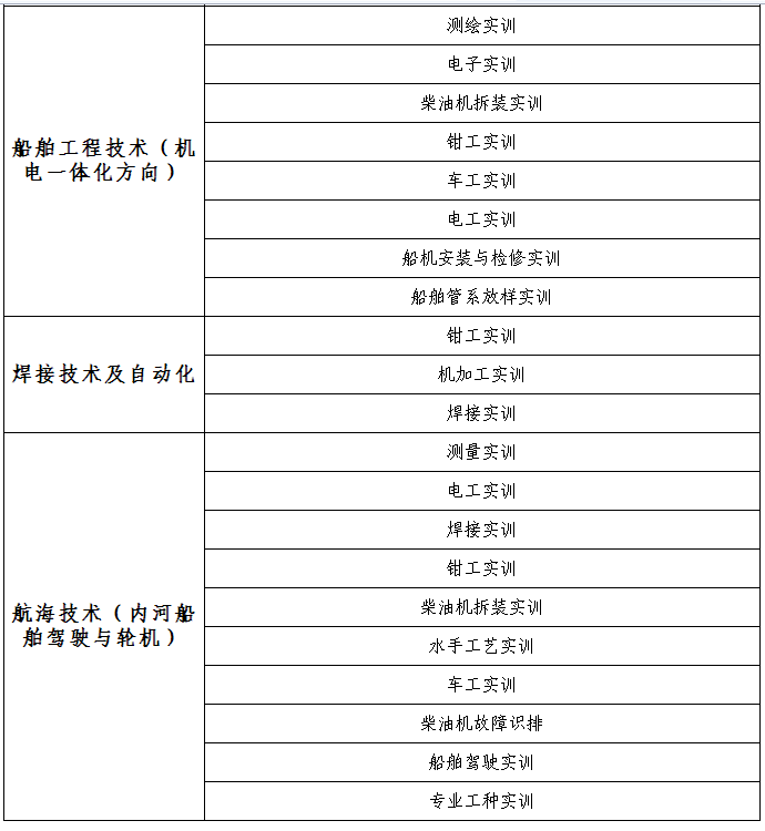 船舶工程学院各专业实训项目