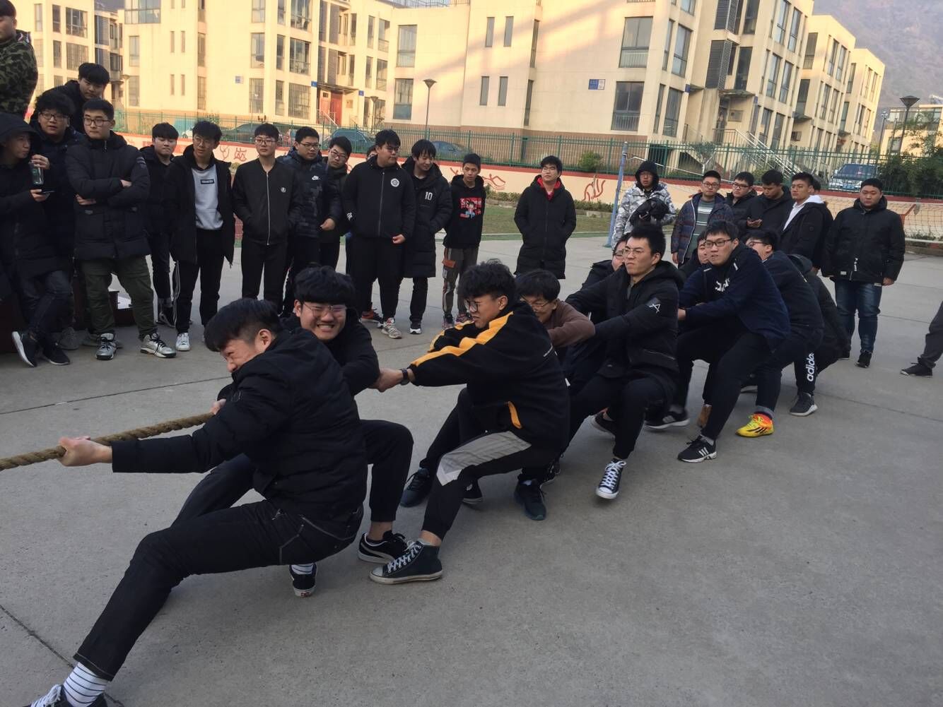 为丰富全体学生的精神文化生活,促进在学生们之间的交流,发扬团队精神,增强凝聚力,船舶工程学院于2018年12月17日下午4点举办了拔河比赛。