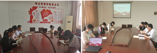 2021年5月7日下午,物流管理学院两个教研室党支部全体党员同志集中开展了党史学习活动。本次学习的主要内容有:1、学习省锡交纪[2021]2号文《MILAN.COM关于组织开展“5·10”思廉月活动的通知》;2、观看视频《百炼成钢》第31集:走自己的路和第32集:正确处理人民内部矛盾;3、领读学习《中国共产党简史》第七章:外交方针政策的调整和邓小平南方谈话。