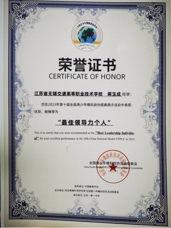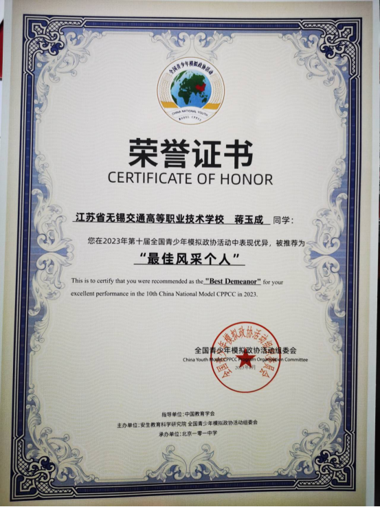 由蒋玉成、姚翕越、唐辰宇、韩梦怡、何陈怡、宿燕婷等青年学生组成的“模拟政协委员”小组,展示“将孝慈助老爱心志愿服务纳入职业学校劳动教育的必修课”的提案,通过对政协委员履职方式和政协会议组织形式的模拟,近距离体验人民政协制度。小组成员制作了视频和PPT,从医疗、教育、科协、记者、妇联、经济不同领域围绕提案进行阐述。学生们积极回答评委提问,将视野从“学校小课堂”转向“社会大课堂”,他们对所选话题的调研深度、覆盖广度以及建议的精细度,得到了现场嘉宾、评委和老师的好评。学校荣获最佳展示团队、优秀提案奖和最佳组织奖三个奖项,蒋玉成荣获最佳领导力、最佳新闻发言人、最佳风采奖三个大奖,宿燕婷、姚翕越、何陈怡同学荣获模拟政协最佳委员,姚翕越还荣获最佳记者奖,王 涛、蒋治国两位老师荣获最佳指导老师,蒋治国老师还荣获最佳主持人奖,个人合计获奖10人次。