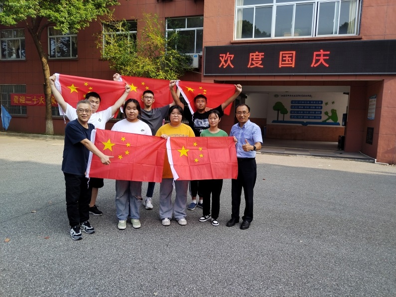 金秋十月,2022年10月1日,国庆当日,锡澄校区的校园五星红旗飘扬,彩旗猎猎。行思长廊的紫藤格外葱绿,思静池水粼粼波光,香樟绿植随风摇弋,无处不透出喜庆的氛围。只见远处有点点红云摇动,那是留校学生拿着五星红旗在开展“青春向党 共抒爱国情”我与国旗留影活动的老师和同学们。
