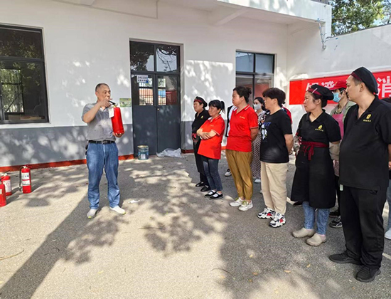 培训环节,安全员深入浅出地讲解了火灾预防、消防器材使用等知识,通过现场演示,让抽象的消防知识变得通俗易懂。随后,全体人员前往操场开展实战演练。安保、食堂、超市、物业员工有序进行灭火器操作,学习 “提、拔、握、压” 四字口诀,成功扑灭模拟火源。整个过程紧张有序,达到了预期效果。