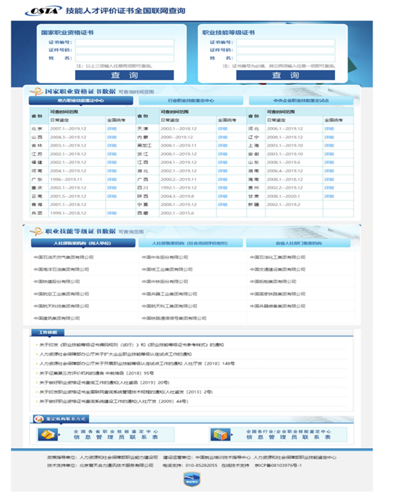 为做好技能人才评价制度改革工作,健全完善技能人才评价体系,提高技能人才评价工作技术指导和服务能力,经研究,决定对国家职业资格工作网进行更名和升级改版,将国家职业资格工作网网站名称变更为技能人才评价工作网,域名继续沿用www.osta.org.cn;将国家职业资格证书全国联网查询系统变更为技能人才评价证书全国联网查询系统,包含技能人员国家职业资格证书查询和职业技能等级证书查询,域名统一使用zscx.osta.org.cn,域名jndj.osta.org.cn同时有效。