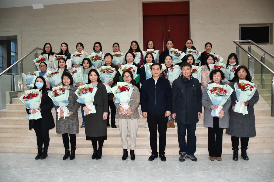 朱书记代表学校党委向全体女教职工致以节日的问候。她指出,过去一年女教职工以主人翁的姿态积极投身学校各项事业中,充分施展聪明才智,在工作、社会和家庭生活等各方面发挥了积极的作用,充分展示了蓬勃向上的新时代教育女性的精神风貌。2021年是中国共产党成立100周年,也是学校“十四五”规划的开局之年,是深入推进学校“领航计划”建设项目、打造苏锡常都市圈职业教育高质量发展标杆的重要之年。朱书记对广大女教职工提出了希望和要求。希望广大女教职工在新的一年里解放思想、凝心聚力,扛起“争当表率,争做示范,走在前列”的光荣使命,推动学校重点工作突破;希望女教职工在工作岗位上要发扬“三牛”精神,任务落实落细,提升工作质量和效率;希望女教职工加强学习,在本职岗位上再立新功,以优异成绩庆祝建党100周年!会后大家愉快地合影留念。