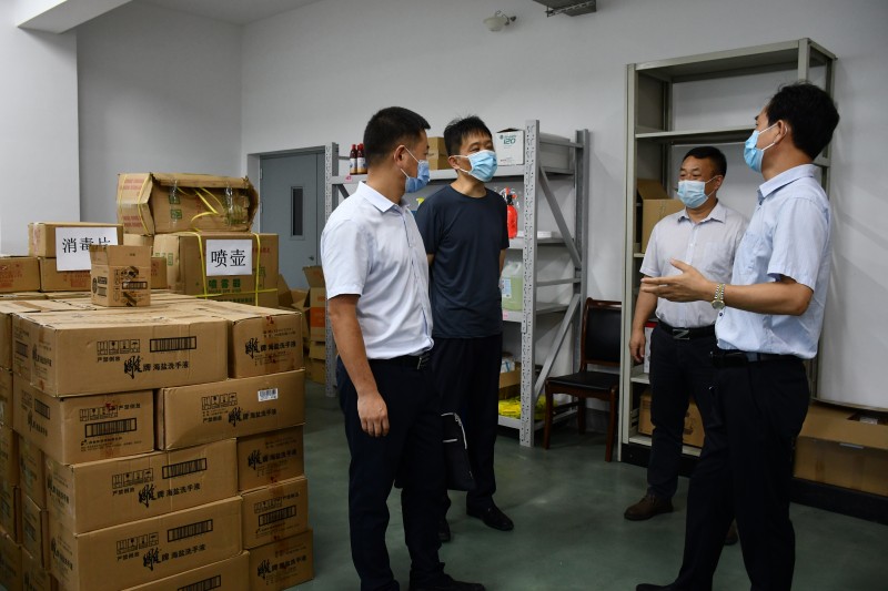 孔组长一行在学校副校长耿兴华的陪同下,实地查看了学校疫情防控工作,现场调研了学校疫情防控物资仓库,翻阅了《MILAN.COM新型冠状病毒感染的肺炎疫情防控工作方案》《学校疫情防控期间校园通风消毒及卫生工作实施方案的通知》等文件和制度。
