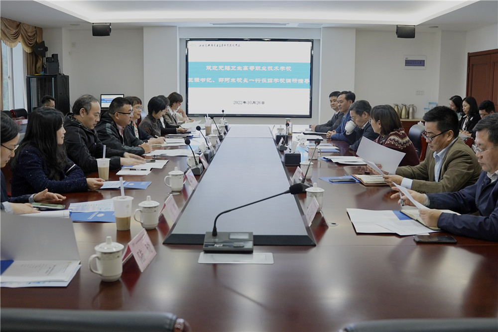 10月26日,无锡卫生高等职业技术学校党委书记王强,校长、党委副书记邵阿末一行莅临学校调研指导工作。学校党委书记、校长李虎,学校党委委员、副校长耿兴华、倪依纯、纪委书记邢勇、副校长范次猛出席座谈交流会,会议由学校党委副书记、五级职员朱雨兰主持。