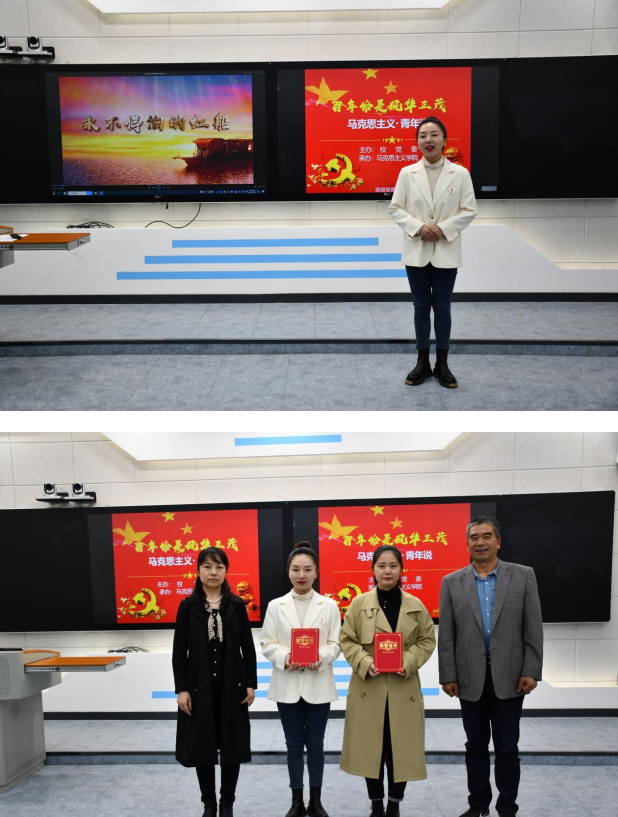 “青年兴则国家兴,青年强则国家强。青年一代有理想、有本领、有担当,国家就有前途,民族就有希望。”在中国共产党迎来百年华诞之际,为让广大青年师生深入学习党史,坚定理想信念,勇担职责使命,马克思主义学院在学校党委的坚强领导下承办“百年恰是风华正茂”-马克思主义青年说演讲比赛。经过前期初赛、复赛的角逐,10月27日,9位优秀教师选手在智慧教室进行决赛,党政办、组织人事处、纪委办公室及教务处领导出席此次活动并担任评委。