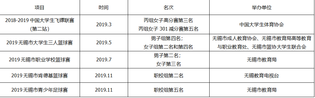 2019年体育竞赛获奖情况