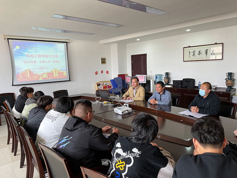 4月21日中午,机电工程学院关工委组织“结对关爱,引领人生”座谈会,学院党总支书记徐小国、党总支副书记王光祥、关工委常务副主任薛刚云及学生代表参加座谈会。