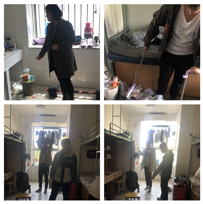 根据计划安排,本周由支部书记孔喜梅和段璐瑶同志一起进入男生公寓AB楼进行检查督促。在检查过程中,发现学生卫生情况不佳,两位党员同志对相关宿舍学生进行耐心指导,并督促其整改。在与学生交流中发现,很多学生存在早上会对卫生进行打扫,但中午宿舍产生的大量食物残余垃圾会放任到第二天。检查当天,因为适逢周五,有些宿舍的垃圾可能会存放三天之久。针对此种情况,两位党员同志通过学生或班主任联系相关学生回宿舍进行卫生整理,防止春季传染病的发生。