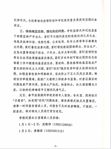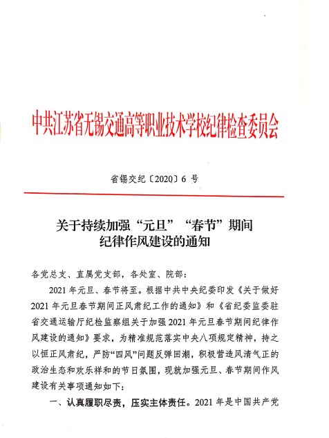 关于持续加强“元旦”“春节”期间 纪律作风建设的通知
