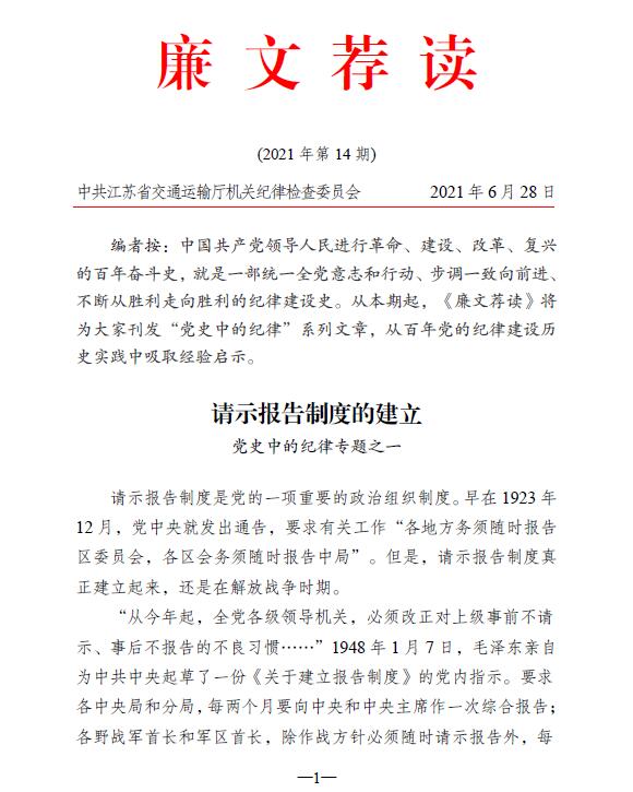 2021年廉文荐读第13期——坚持不懈抓纪律抓作风