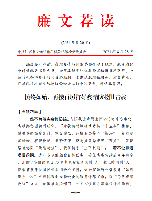 2021年廉文荐读第20期——慎终如始、再接再厉打好疫情防控阻击战