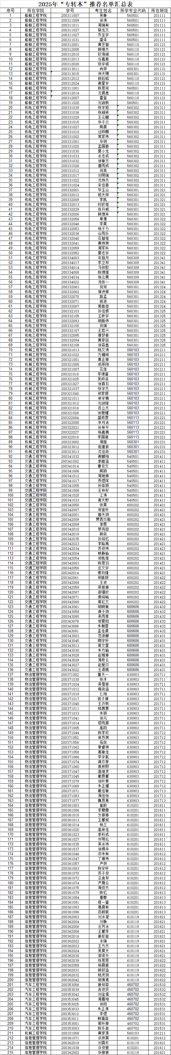 附件:2025“专转本”推荐名单汇总表