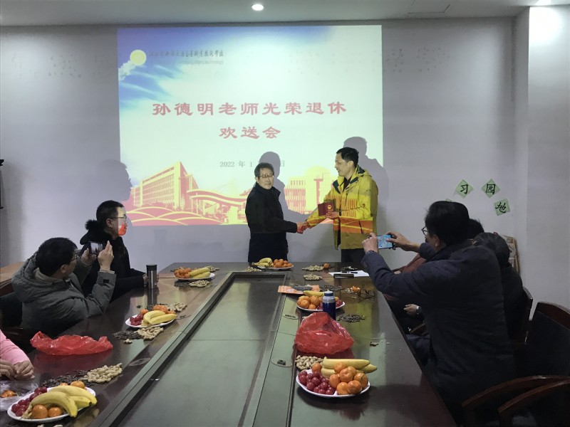 为深化教师文化建设,弘扬尊师重教传统美德,增强学院教师间的凝聚力,机械工程学院于1月10日举行了孙德明老师光荣退休欢送会。机械工程学院院长邢木清、校区管理处处长褚晓林、学院党总支副书记吴淼、副院长顾国强、锡澄校区分工会主席王演新、机械教研室全体老师及其他教师代表参加了欢送会。