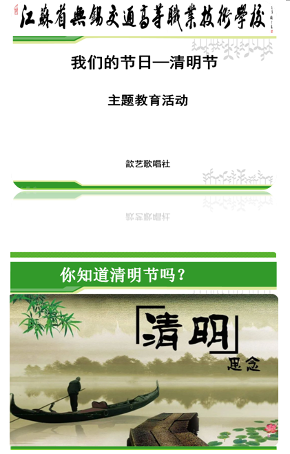 清明节是中华民族的重要传统节日,为深入贯彻校团委关于组织疫情防控下开展社团主题活动的精神,机械工程学院歆艺歌唱社于4月5日清明节当天举行了“我们的节日——清明节”线上主题教育。