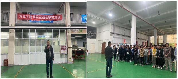 在校十九届师生运动会到来之际,为充分调动运动员与展示方队的积极性,保障运动会各项工作有序进行,汽车工程学院于4月27日下午15:10在学院实训中心举行十九届运动会赛前动员大会,本次动员大会由汽车工程学院史敏智老师主持,运动员代表范立豪同学做了发言,学院党总支副书记吴传全老师进行了动员,学院党总支书记周晓伟老师莅临指导。