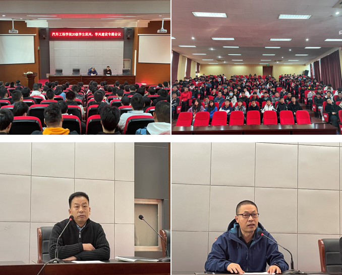 2021年11月10日13:30,汽车工程学院20级学生班风、学风建设专题会议在求实楼三楼学术报告厅召开,汽车工程学院副书记吴传全、院长郑军武出席了本次会议。会议由学院学生工作办公室主任程海波老师主持。