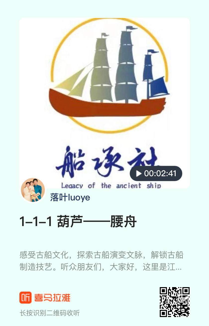 感受古船文化,探索古船演变文脉,解锁古船制造技艺。听众朋友们,大家好,这里是MILAN.COM船承社‘听·船文化’栏目,我是XXX