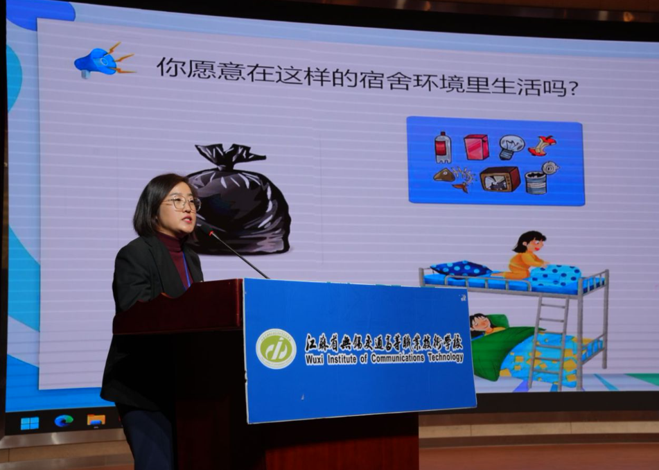 在颁奖仪式上,学生工作处副处长籍鑫慧作了讲话,围绕举办宿舍文化节的原因、目的和意义,指出学校举办“宿舍文化节”是为了繁荣校园文化,陶冶同学情操、培养同学们的团队意识和创新能力,引导同学们营造健康、高雅和向上的宿舍文化,创造舒适和谐的学习生活环境,养成良好的学习生活习惯,充分发挥宿舍思想政治教育和素质教育的阵地作用。同时,也希望获奖宿舍能成为标杆宿舍,带动周边、影响大片,成为无锡交校一张靓丽名片。