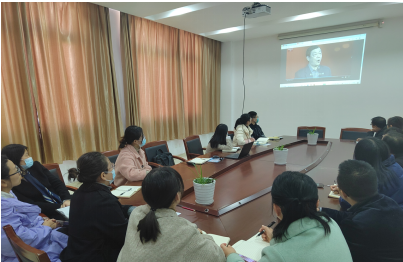 接着,全院教师集体观看了《学习领会党的十九届六中全会精神公开课》之“‘两个确立具有决定性意义”和“马克思主义中国化新的飞跃”两个专题。然后,进行了交流发言,财商教研室党支部书记卢潇潇和物流教研室党支部书记朱雪娟分别分享了学习的心得体会。