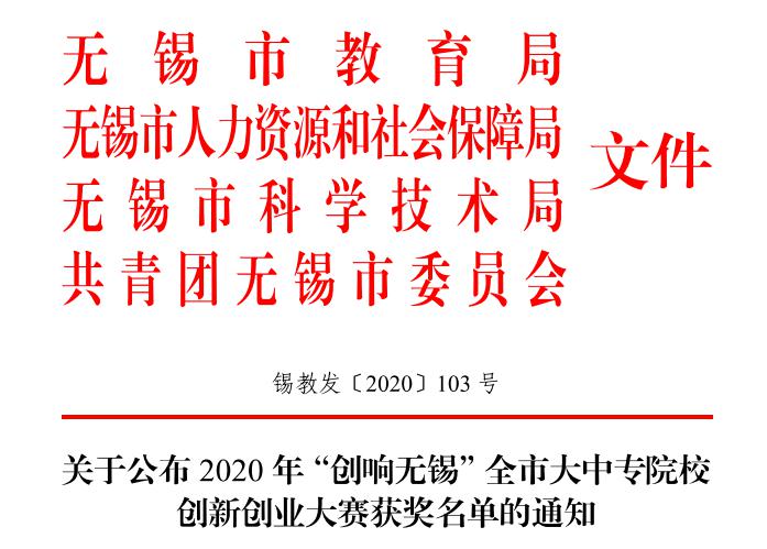 学校在2020年“创响无锡”全市大中专院校创新创业大赛之创新创业知识竞赛中21名同学荣获“知识竞赛之星”光荣称号。其中,交通工程学院13人,信息管理学院4人,物流管理学院4人。学校获奖人数在全市22所大中专院校中排名第七。