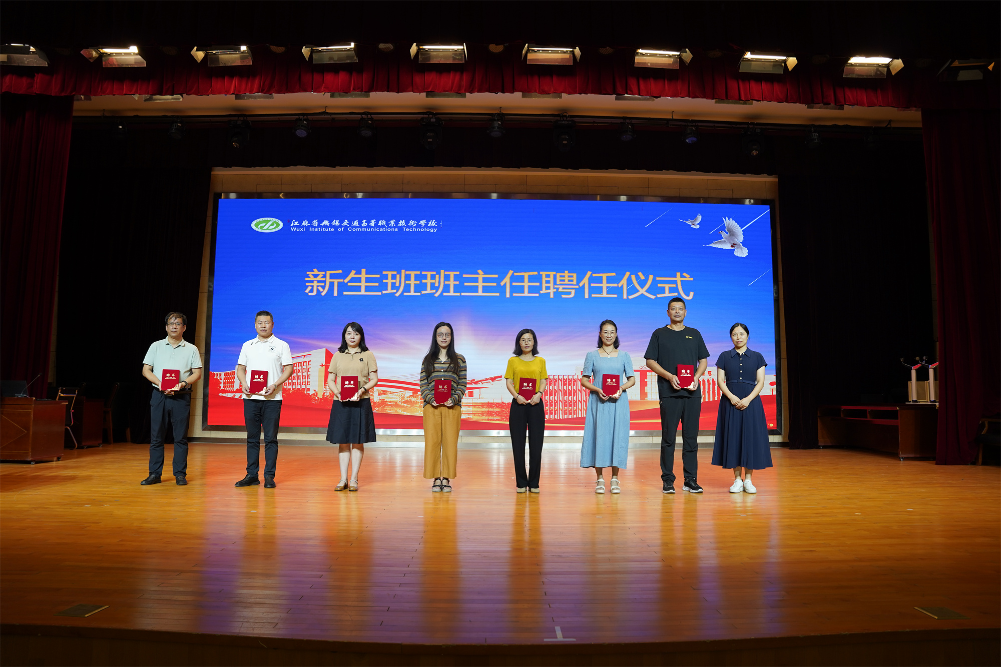开班典礼上,吴校长为2024级新生班班主任颁发了聘书,表彰了2023-2024学年校级优秀班主任,并作开班动员讲话。吴校长指出,学生工作是学校教育教学工作中至关重要的一环。专(兼)职辅导员是学生成长道路上的引路人,是学校与家庭、社会沟通的桥梁和纽带。专(兼)职辅导员要强化责任担当,提升自身素质,保持教育工作的前瞻性和有效性;要关爱学生成长,加强班级管理,提高学生综合素质;要创新工作方法,提高工作效率,更快地适应新时代职业教育发展速度,服务学生成长成才。