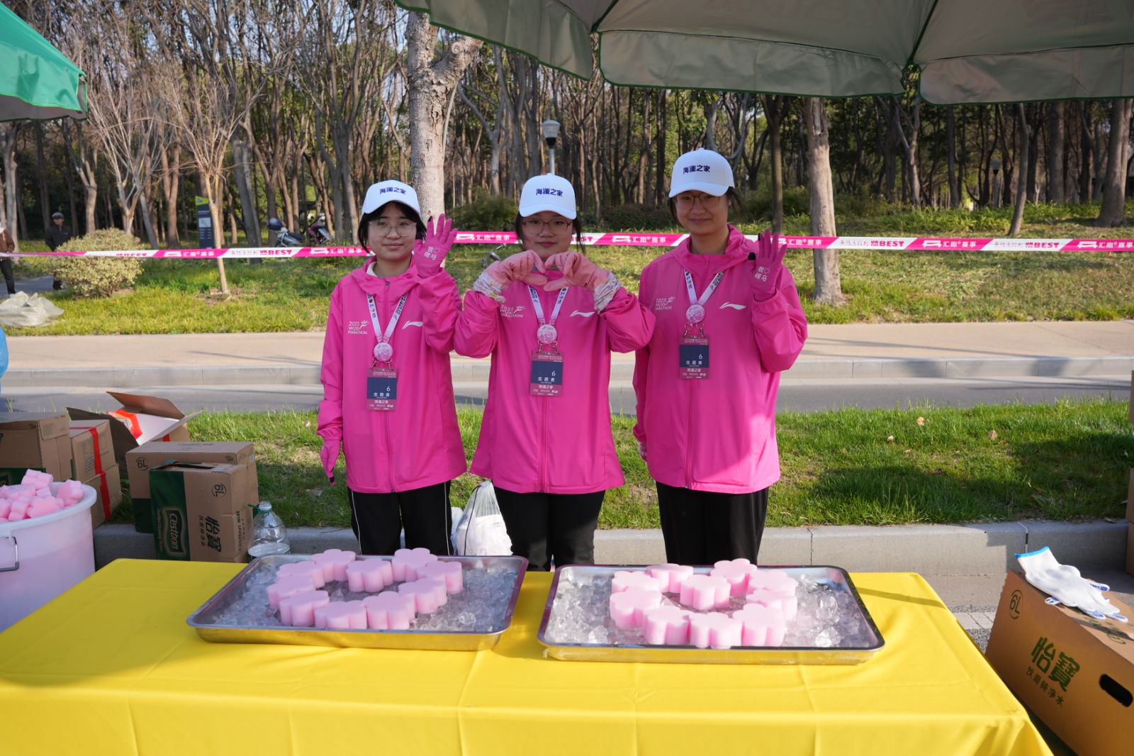 清晨6:30,志愿者们精神抖擞,迎着朝霞到达各自的岗位。在赛道沿途,志愿者们化身“能量补给站”,小绿伞下,他们将饮用水、能量胶、水果等物资摆放整齐,时刻准备为选手们提供能量补充。他们熟练而迅速地将补给品递给选手,同时还热情地喊出:“加油!”比赛当天气温较高,部分选手陆续出现中暑、扭伤、抽筋等身体不适,医疗志愿者们熟练地配合随车医生,及时对选手进行有效处置,确保安全完赛。 志愿者们热情洋溢的身影在赛场上随处可见,他们各司其职,牢记志愿者的使命和担当,除了细致地准备物资、清理赛道,保障赛事的顺利进行,志愿者们在工作之余积极为参赛选手加油助威,用汗水和微笑为这场盛大的赛事注入了温暖与活力。 在这场马拉松活动中,学校志愿者以专业的服务、热情的态度和无私的精神,为赛事的顺利进行做出了重要贡献,诠释了奉献、友爱、互助、进步的志愿者精神,展现了当代青年学生的青春风采和积极向上的精神风貌。
