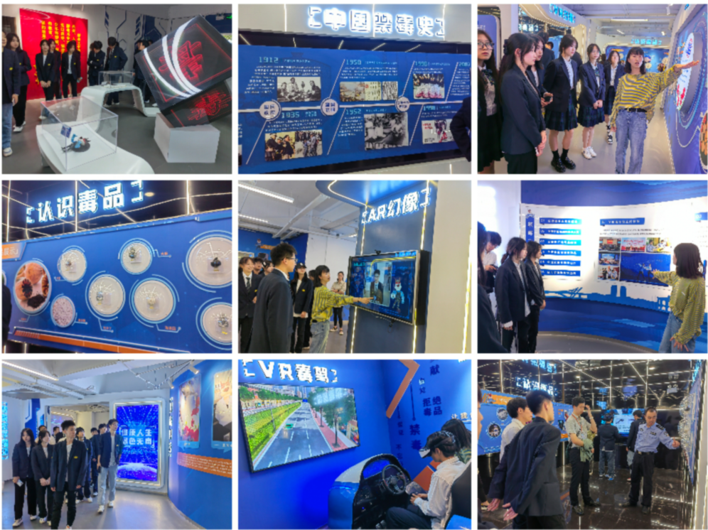 参观中,在讲解员的引领下,大家先后参观了禁毒图片资料展示、仿真毒品模具,展厅内生动的图片、文字以及具体的实物,帮助大家生动直观地了解禁毒历史、禁毒成果、法律法规、毒品危害等知识。通过吸毒人脸变化模拟系统等电子科技设备,观看了一个个吸毒者触目惊心的悲惨经历,揭示了毒品给家庭和社会带来的严重危害。讲解员详细讲解了国家领导人对禁毒工作的批示精神、中国禁毒简史、国内外毒情形势,并呼吁大家积极学习禁毒知识,筑牢禁毒防线,坚决做到珍爱生命,远离毒品。