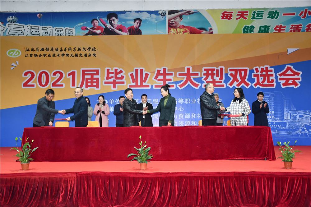 11月28日,2021届毕业生就业双选会在学校动感活动中心隆重举行。学校党委委员、副校长耿兴华,学校党委委员、党委宣传部部长范次猛,无锡人社局职业能力建设处副处长王炜,无锡市惠山区人社局党委委员、办公室主任奚静娟,无锡交建集团交通工程公司党委副书记郭建清,京东物流集团华东区域分公司副总经理张延龙,无锡信捷电气股份有限公司校企合作部部长王正堂,上汽大通有限公司无锡分公司人事经理孙志科等领导和企业代表出席启动仪式。启动仪式由学校副校长倪依纯主持。