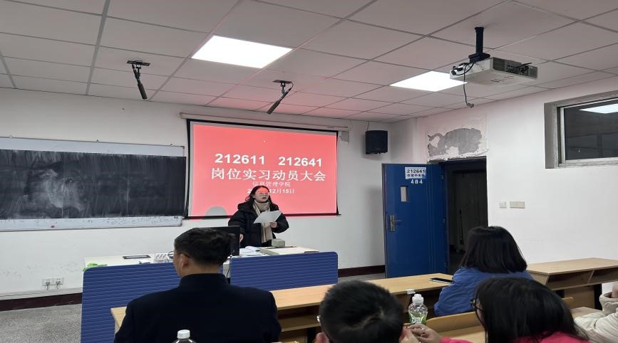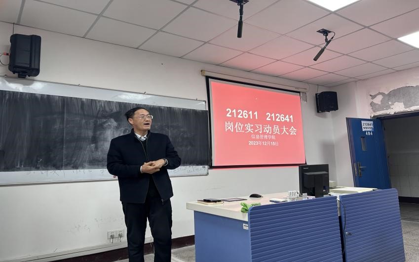 2023年12月15日上午,信息管理学院在正德楼404教室召开212611、212641班岗位实习动员大会。