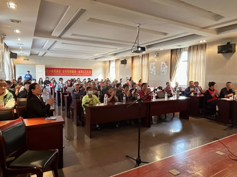 开场歌舞《奢香夫人》、合唱《最炫名族风》瞬间带动全场氛围;合唱《我和我的祖国》以饱满的热情、昂扬的精神表达了对祖国的热爱之情,展示出新时代青年的责任与担当;独唱《今天是你的生日,中国》歌词中充满亲昵,尽显爱国之情,爷爷奶奶不禁为此动容……随着时间的推移,一个又一个精彩的节目轮番登场,现场掌声不断、笑声连连,气氛热火朝天。最后,大家坐在一起陪老人聊聊闲话、说说家常。志愿者们真挚的表情、幽默的话语,逗得老人们乐不可支,现场人员其乐融融地围坐一堂,充满了欢声笑语。