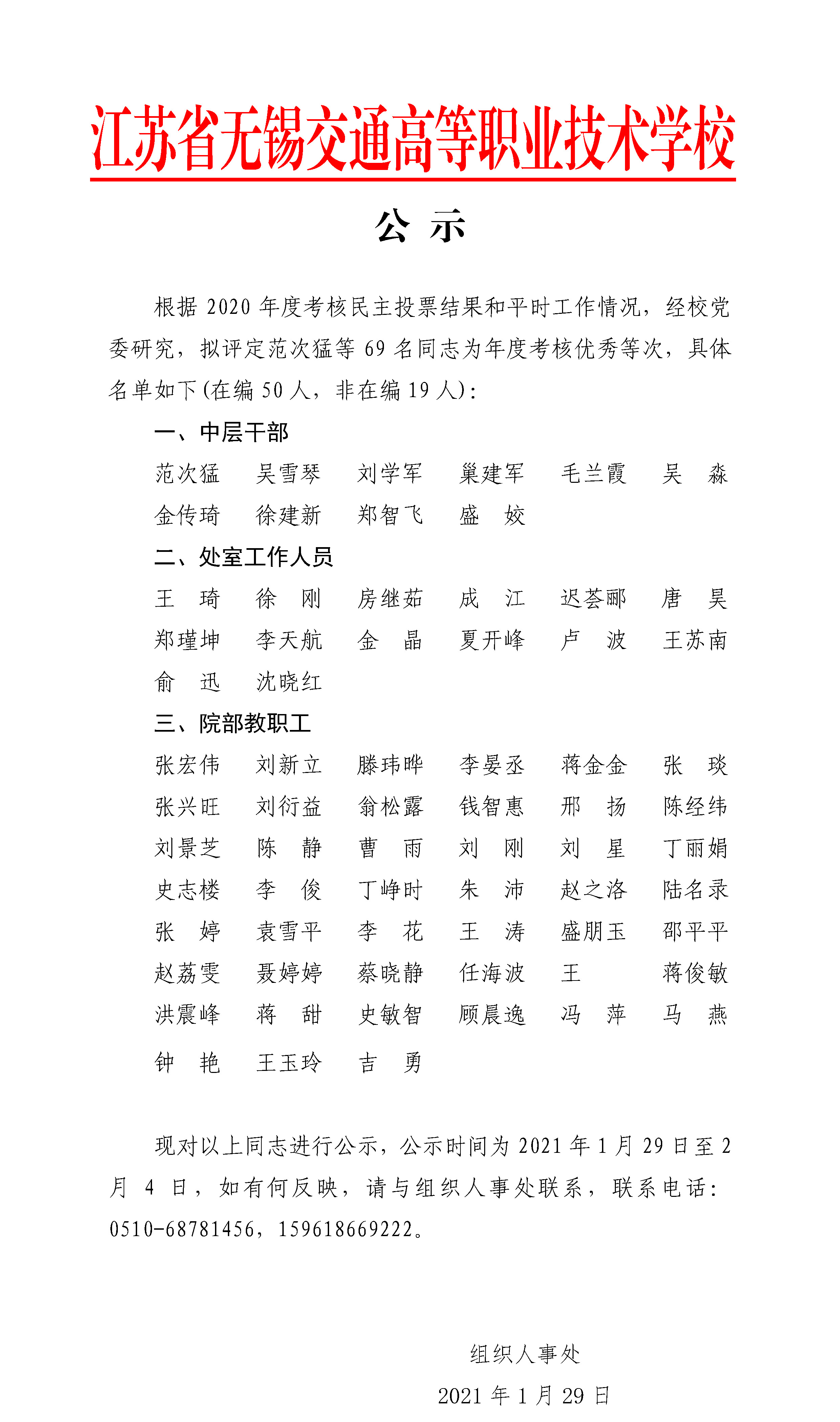 2020年度考核优秀等次人员名单公示