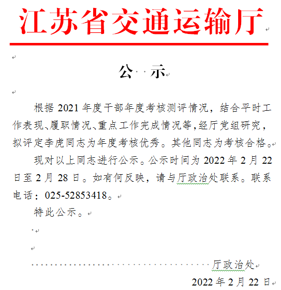 2021年度考核优秀等次人员名单公示