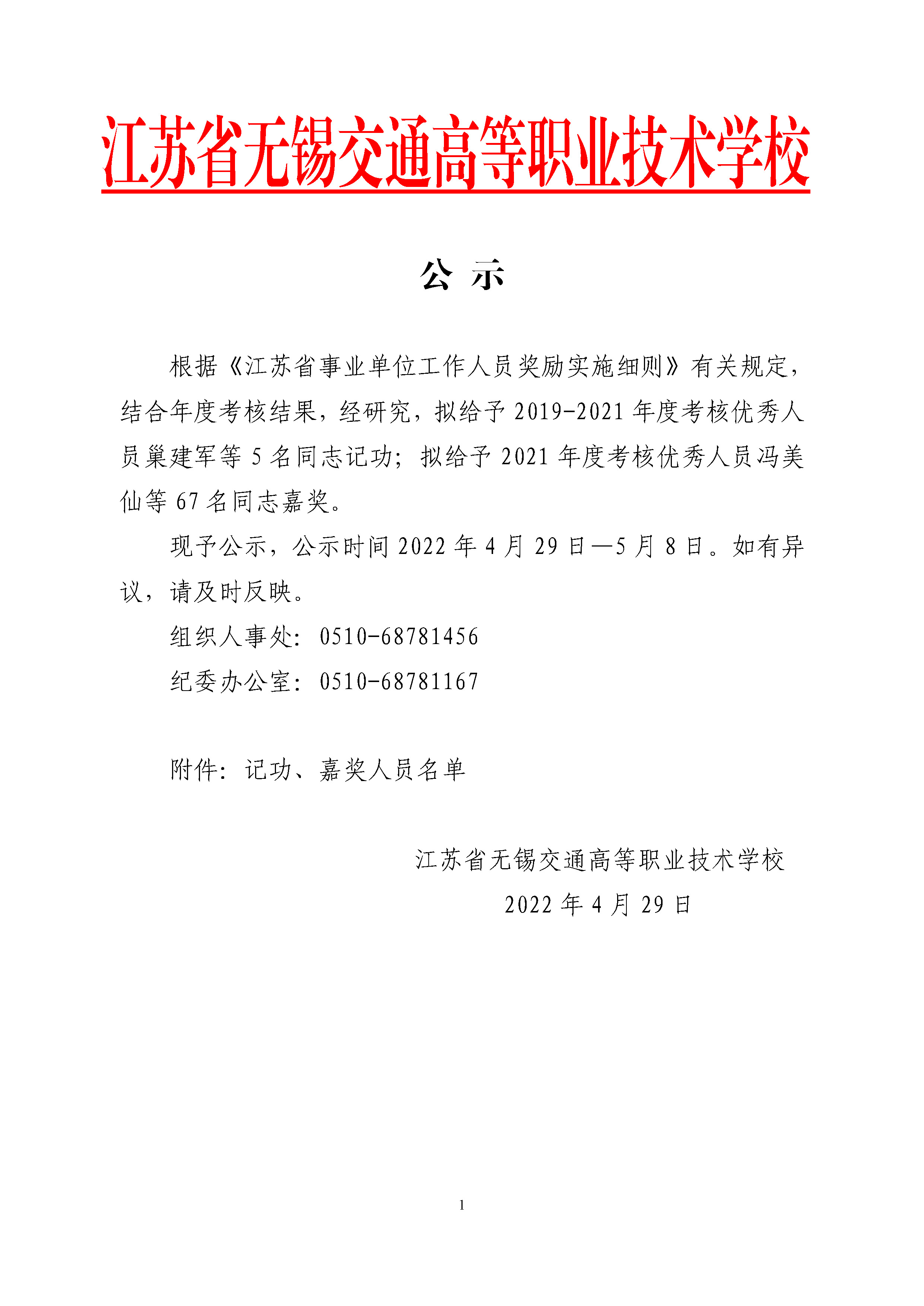 2022年拟给予记功和嘉奖奖励人员名单公示