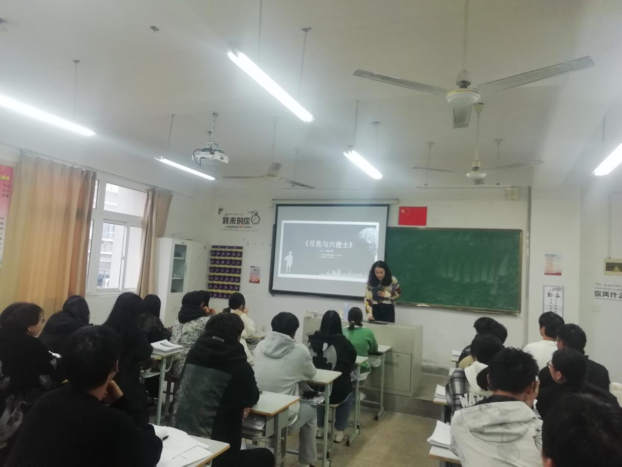 首先,黄青青为同学们推荐并赠送了著名作家毛姆撰写的《月亮与六便士》。希望通过此书引导同学们关注自己内心真正的追求,有勇气做出自己的选择,既要仰望星空,又要脚踏实地,实现自己的人生目标。也希望通过此次活动,培养同学们良好的阅读习惯,进一步在班级营造多读书、读好书、善读书的浓厚氛围。