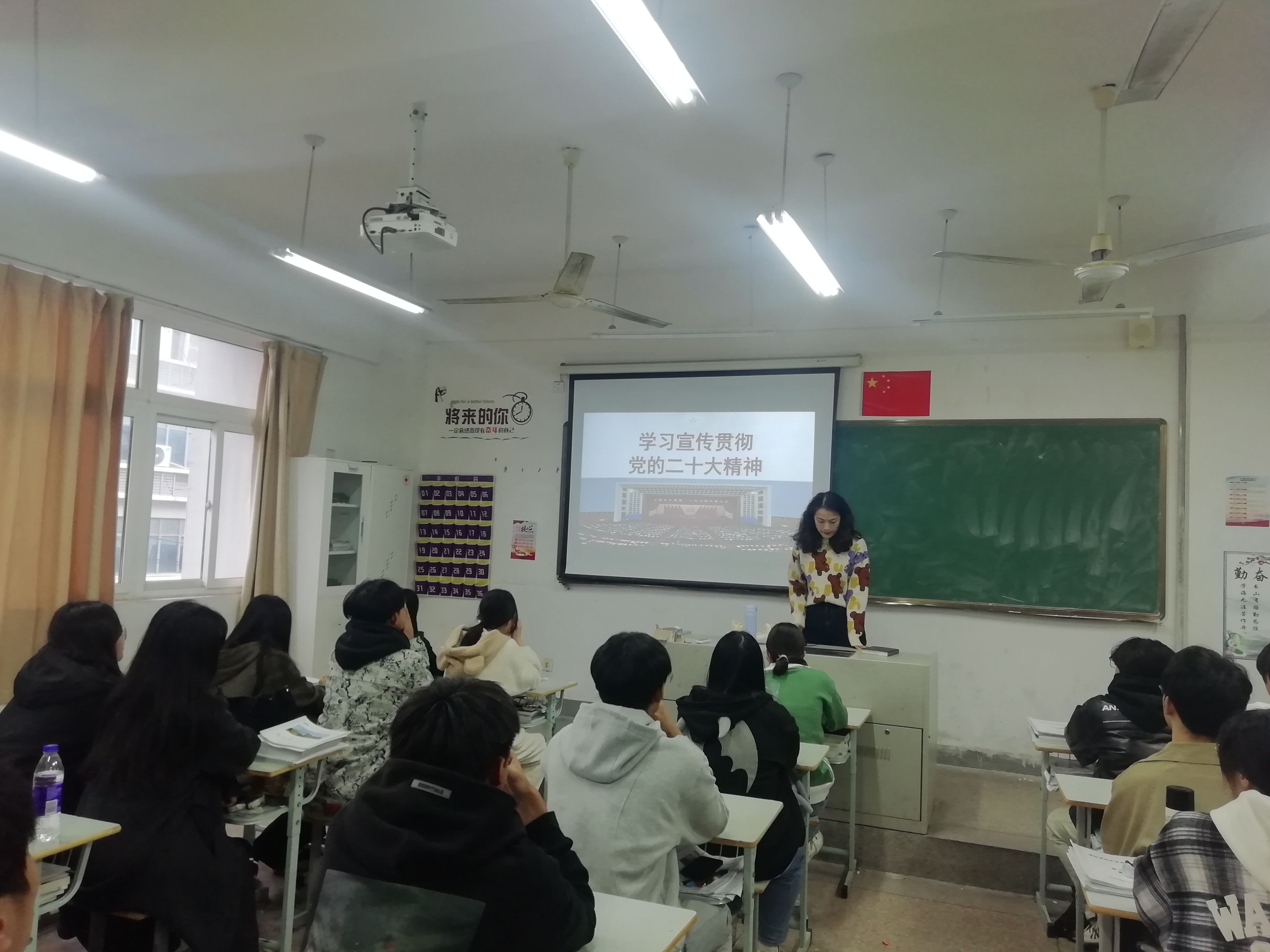 随后,黄青青以“党的二十大精神解读”为主题,紧紧围绕党的二十大报告内容和精神实质,用通俗的语言、生动的事例、丰富的图片,介绍“过去五年工作和新时代十年伟大变革、马克思主义中国化时代化新境界”等十五个方面内容。通过此次宣讲,学生们对党的二十大精神有了更深入的了解,也更加坚定了感党恩、听党话、跟党走的决心和信心。同学们纷纷表示今后要继承光荣传统,大力弘扬吃苦耐劳、自力更生、艰苦奋斗的精神,立志用奋斗践行青春誓言。