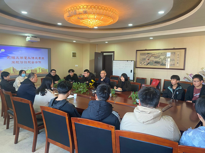 我校和太湖鼋头渚风景区已建立了多年的校企合作关系。对于本次太湖鼋头渚风景区来访,吴院长代表学校和学院表示了热烈欢迎,介绍了学校近年来发展状况,办学理念以及办学特色,学校目前的专业组成,以及我院近年来各专业招生情况、毕业生就业情况等。企业代表则主要讲述了太湖鼋头渚风景区目前的企业发展情况、企业文化、发展理念、人才需求等内容。校企双方就今后进一步合作的方向与模式展开了热烈交流,达成多点共识。学生和企业直接面对面交流,针对实习就业、岗位需求等方面进行了沟通交流。会后,校企双方将针对后续合作内容作进一步推进。