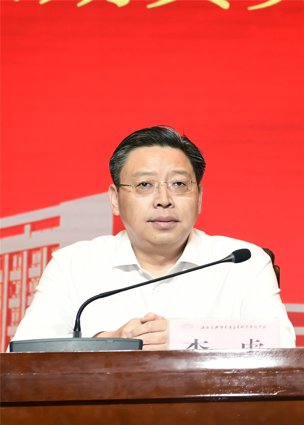 8月1日,江苏省中华职业教育社第六期黄炎培职业教育思想培训班在学校致远楼大礼堂开班。省政协副主席、民建省委主委、省职教社主任洪慧民在开班式上作动员讲话。他希望广大社员要以高度的政治自觉和继往开来的责任担当,积极投身职教社事业,将黄炎培等先贤缔造的百年事业继承发扬下去,在履行“争当表率、争做示范、走在前列”光荣使命、谱写“强富美高”新江苏现代化建设新篇章中展现更大作为!以实际行动迎接党的二十大胜利召开!