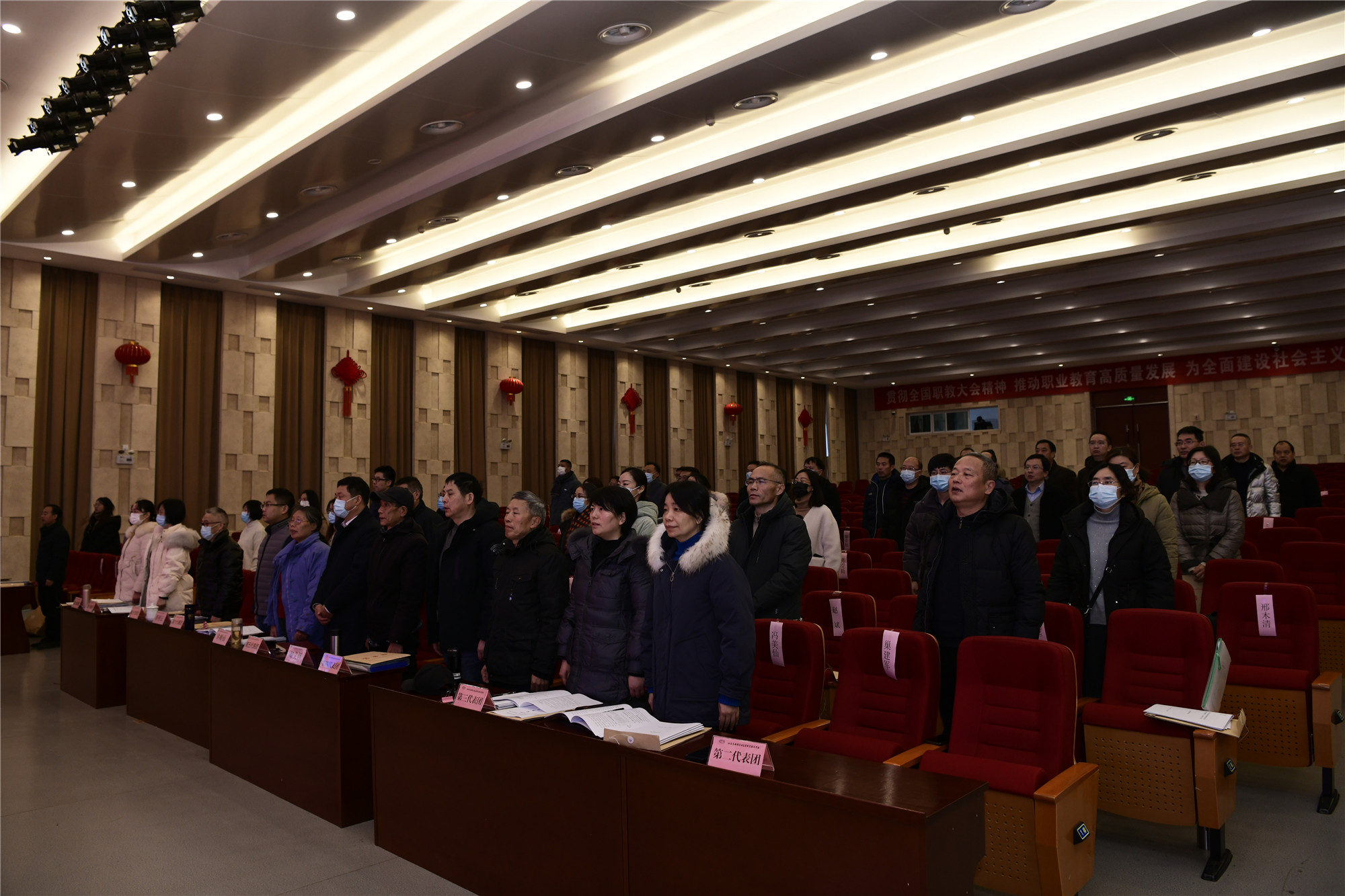 大会号召,全体教职工要坚持以习近平新时代中国特色社会主义思想为指导,落实立德树人根本任务,立足新发展阶段,贯彻新发展理念,高质量高标准落实“十四五”规划重点任务,着力推进“领航计划”建设,抢抓苏锡常都市圈职业教育高质量发展新机遇,凝心聚力、真抓实干,以更加饱满的工作热情,更加务实的工作作风,更加有力的工作举措,奋力开创“十四五”学校发展新局面,以优异成绩迎接党的二十大召开。