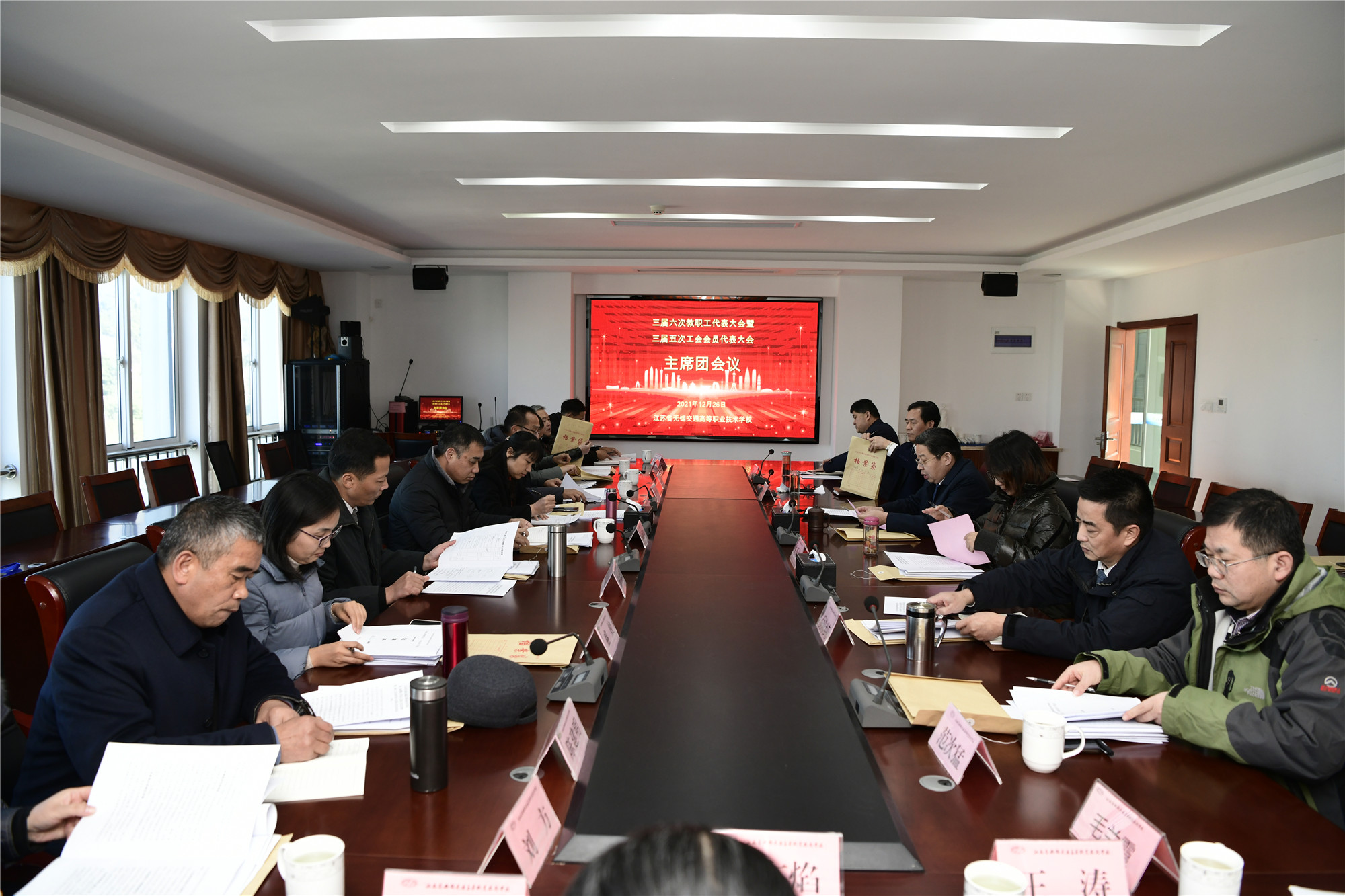 12月26日,学校在致远楼大礼堂召开第三届教职工代表大会第六次会议暨第三届工会会员代表大会第五次会议。学校党委书记、校长李虎出席会议并作工作报告。学校党委委员、副校长耿兴华、倪依纯、邢勇,66名正式代表及列席代表、特邀代表参加大会。会议由学校党委副书记、五级职员朱雨兰主持。大会在庄严的国歌声中开幕。