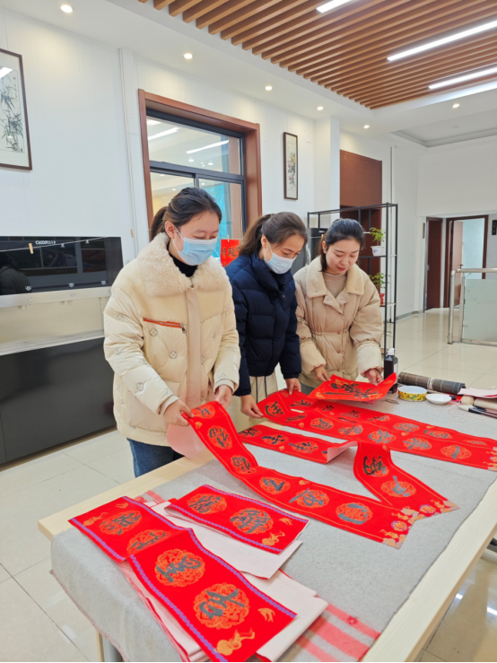 一幅幅吉祥喜庆的“福”字和春联映出老师们喜悦的笑脸,传递年味,送上问候。活动既弘扬了中华优秀传统文化,又丰富了校园精神文化生活,充分发挥了凝心聚力的作用,更为学校高质量发展增添了勃勃动力。