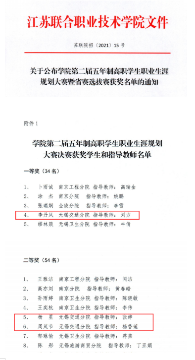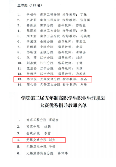 我校师生在江苏联合职业技术学院第二届职业生涯规划大赛喜获佳绩