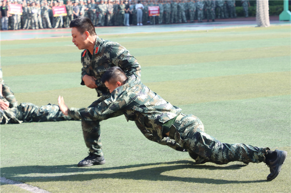 活动中,学生代表进行了擒敌拳表演,教官进行了擒敌术表演,所有班级的学生进行了分列式表演,充分展示了各方阵斗志昂扬的精神风貌,赢得了现场观众的阵阵掌声。