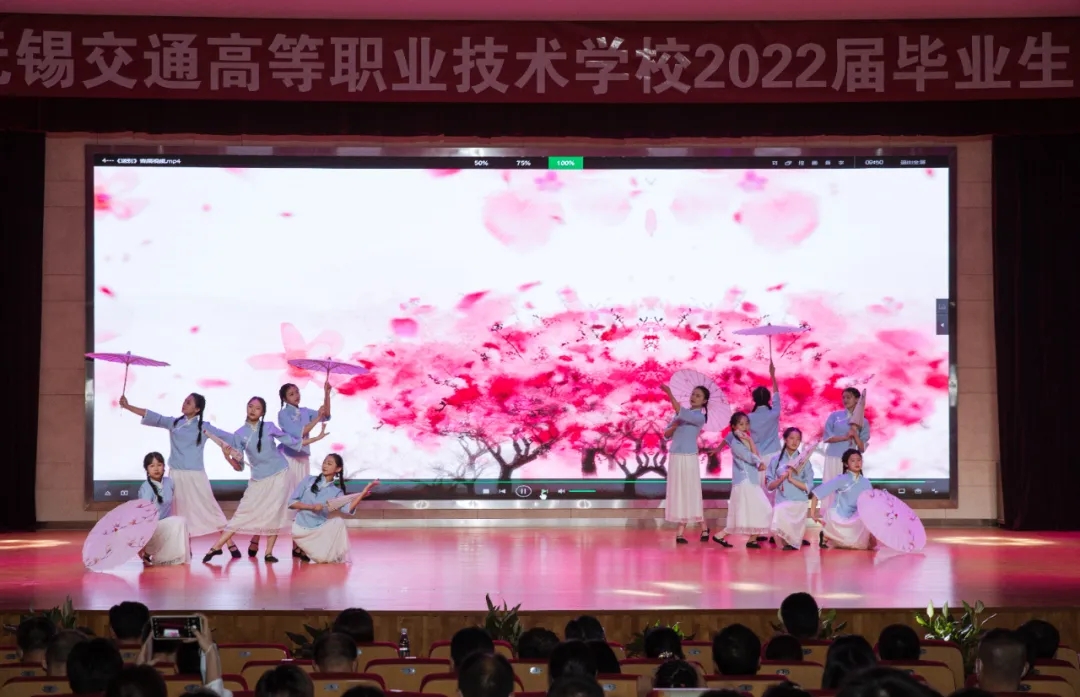 典礼开始前,观看了江苏联合职业技术学院录制的院长毕业寄语视频。在暖心视频《交校有我》中,一张张照片清晰记录了交校校园生活的点点滴滴,记录了毕业生对母校的不舍,对青春奋斗的致意,体现了母校对毕业生的深厚情谊和深深的牵挂。