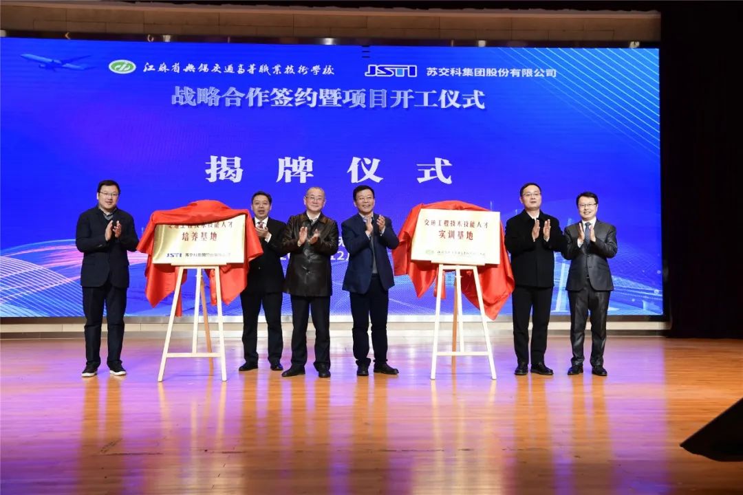 金凌副厅长、夏成满书记、朱晓宁总裁、李虎书记、俞刚局长、惠恭健副局长共同见证战略合作协议的签订,共同为“苏交科集团交通工程技术技能人才培养基地”和“MILAN.COM技术技能人才实训基地”揭牌,并启动生产性交通工程试验检测中心项目开工仪式。